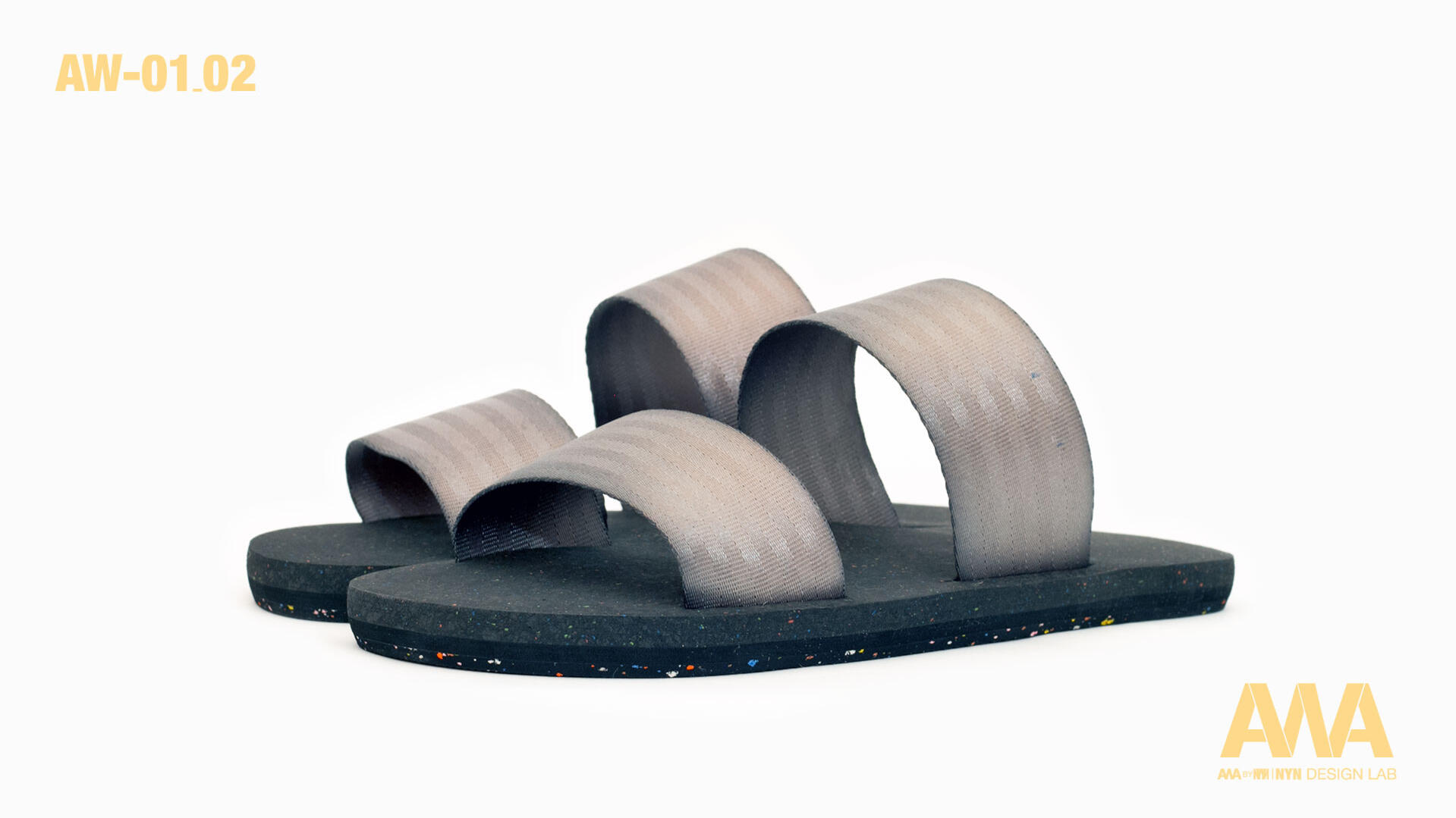 The AW01_01 and AW01_02 models are distinguished by their upper structure. Model 01 features crossed straps reminiscent of traditional Japanese sandals, while model 02 displays parallel straps inspired by ancient Roman sandals.