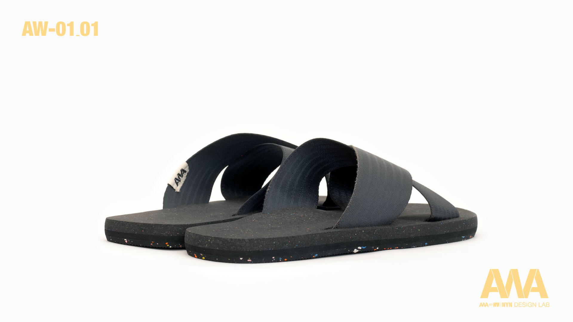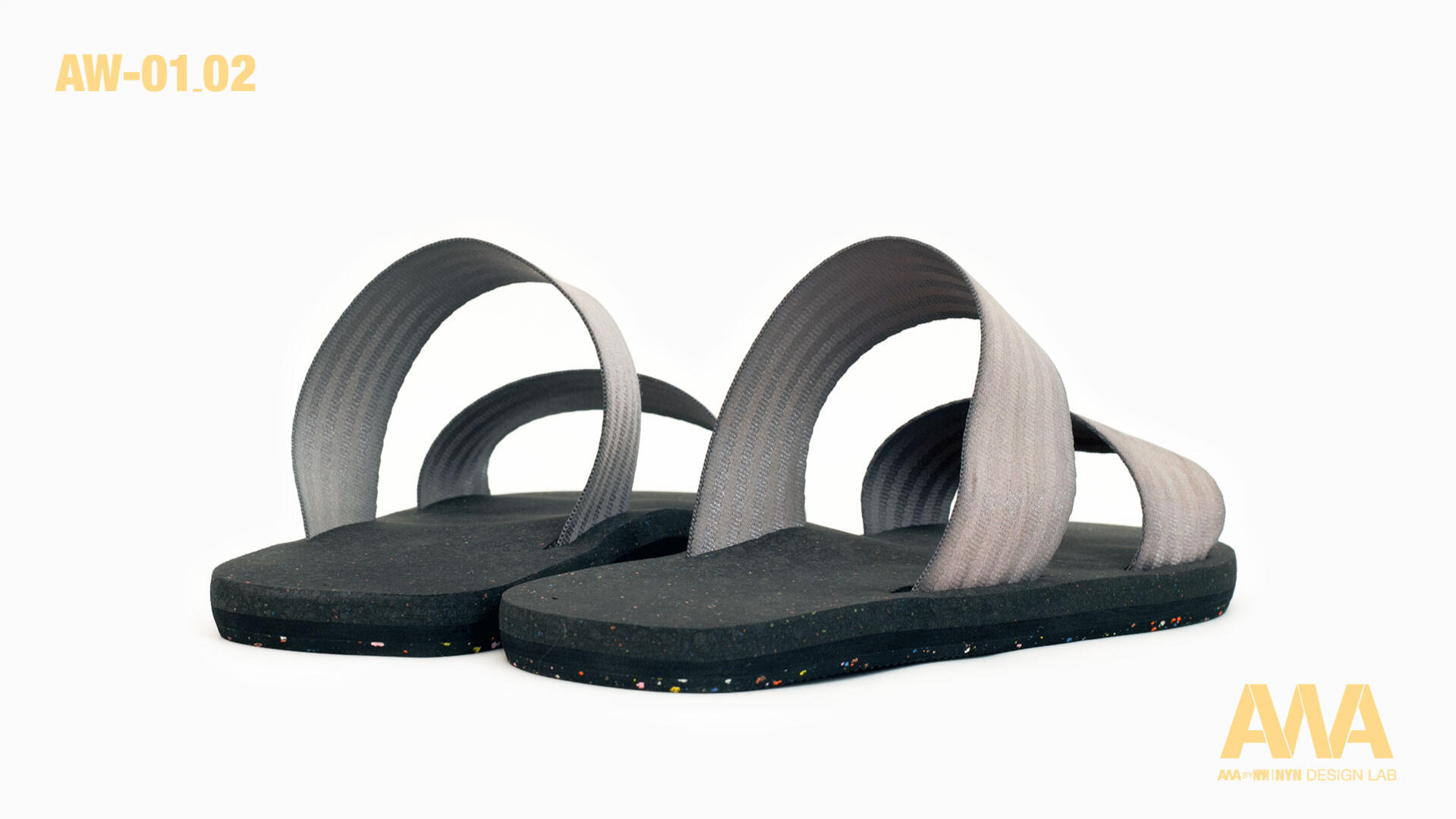 The AW01_01 and AW01_02 models are distinguished by their upper structure. Model 01 features crossed straps reminiscent of traditional Japanese sandals, while model 02 displays parallel straps inspired by ancient Roman sandals.